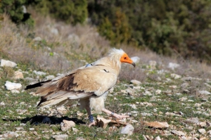 Le Vautour percnoptère (Neophron percnopterus), rapace, utile, étrange et inoffensif, vit de 20 à 40 ans. Le maintien de ses effectifs dépend fortement de la survie des adultes, et de leur capacité à produire des jeunes chaque année au cours de leur vie. Il fait son nid dans des cavités des parois rocheuses. Cela le met à l’abri des prédateurs et lui assure la tranquillité. L’accouplement a lieu fin mars-début avril, puis la ponte fin avril-début mai (1 à 2 œufs). La couvaison dure une quarantaine de jours, les deux adultes se relayant. Un poussin prendra son envol entre 2,5 et 3,5 mois après l’éclosion. En déclin sur l’ensemble de son aire de répartition mondiale, le Vautour percnoptère appelé aussi « Percnoptère d’Égypte » ou « Lou Peyre Blanc » en provençal, est cependant parvenu à traverser le temps jusqu’à notre époque. Il est encore aujourd’hui emblématique du Luberon et de la biodiversité liée au pastoralisme.