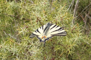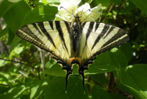 L'Iphiclides podalirius en latin ou le Flambé, est un grand papillon diurne pouvant mesurer de 50 à 70 mm à taille adulte. Il est facilement reconnaissable aux lignes noires et blanches de ses ailes et à ses ocelles bleues. Le Flambé est présent dans les milieux ouverts et secs et jusqu'à 1600 m d'altitude. Très touché par la modification des pratiques agricoles, il arrive aujourd'hui à s’étendre grâce à la prise en considération de ses habitats dans la gestion de la biodiversité.