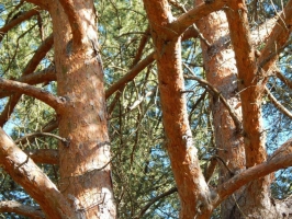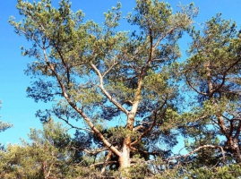 Peu fréquent dans la forêt de Pélicier entièrement façonnée par l’homme, le pin sylvestre se distingue facilement du pin noir par la couleur d’un brun presque orange de son écorce. Au tronc souvent tordu et aux aiguilles courtes et d’un vert gris-bleu, il est le conifère poussant naturellement le plus commun dans le Luberon au-dessus de 500 m. On le trouve à l’étage supraméditerranéen du chêne pubescent, ainsi qu’à l’étage montagnard du hêtre (au-dessus de 700 m en ubac).