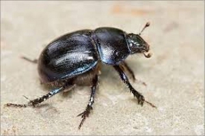 En chemin, on peut parfois croiser la route du bousier, alors qu’il cherche une bouse ou du crottin, dont il forme une boule qu’il roule jusqu’à un endroit favorable. Là, il creuse un trou pour enterrer sa boule et y pondre ses œufs. La larve se nourrit des excréments, l’adulte peut en manger aussi un peu par gourmandise. On distingue ce Coléoptère à ses ailes striées d’un noir aux reflets bleutés, à sa face inférieure métallisée et à ses antennes courtes terminées en massue.