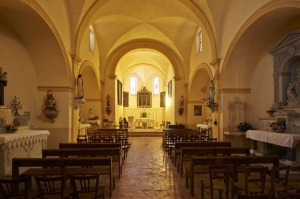 Elle a été construite en 1642 à l’époque où les habitants finissent de s’installer dans la plaine. En abandonnant le vieux village, les Mazauguais délaissent petit à petit l’église paroissiale trouvant plus commode de fréquenter la « chapelle d’en bas ». Privée jusqu’en 1718, les fidèles assistent aux messes après accords avec la famille seigneuriale. Après l’agrandissement de cette église en 1662, l’autorité ecclésiastique y instaure une célébration des offices. Elle est à nouveau agrandie en 1690.