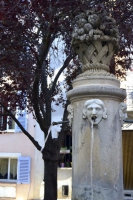 Sur cette place, on trouve la fontaine des quatre saisons. Inscrite aux Monuments historiques, elle doit son nom aux quatre masques représentant les quatre saisons reversant leur eau dans un bassin. Elle est surmontée en 1905 par un buste de la République, situé aujourd’hui sur la fontaine de la Grand rue, que vous pourrez observer sur le chemin de retour. Cette place doit son nom à l’ancien groupe scolaire du village comprenant une école de garçons et une de filles, qui fut construit en 1905.