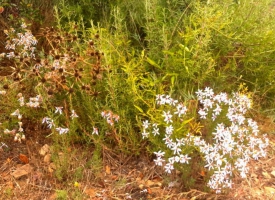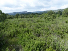 Sur le plateau, on retrouve plusieurs ‘’faciès’’ de garrigues dont la garrigue à Chêne kermès (Quercus coccifera) qui occupent la majorité de la partie sud du plateau, puis la garrigue à Romarin (Rosmarinus officinalis) un peu plus loin côté nord du chemin, mais aussi la garrigue à Ciste blanc (Cistus albidus) dans les trouées et ourlets de la pinède. Ces formations arbustives et sous-arbustives connaissent sur le site une dynamique qui se fait détriment des espaces de pelouse sèche. C’est une dynamique naturelle et habituelle en l’absence de pâturage.