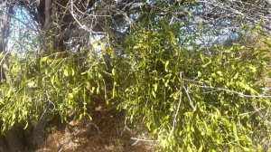 Le gui des feuillus (Viscum album album) est une plante parasite qui vit aux dépens d'un arbre hôte, comme ici un amandier. Sa toxicité est liée à la présence de protéines. Son ingestion peut engendrer des diarrhées et des douleurs abdominales. Mais le gui, nanti de vertus extraordinaires dans la mythologie antique et germanique, fut célèbre jusqu'au XIXe s. pour guérir l'épilepsie. Aujourd'hui, ses préparations trouvent une indication dans l'hypertonie, l'hypotension, l'artériosclérose…