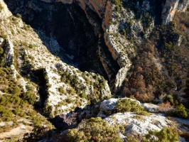 Sur votre droite au fond du ravin vous aprecevrez Val d’Angouire qui sert de parcours pour la pratique du canyoning, certainement l’un des plus sauvages des gorges du Verdon, avec celui de Main Morte. Son accès, relativement long en fait un parcours préservé, peu fréquenté et accessible à tous.