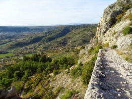Regardez où vous mettez les pieds ! Quelques-uns des blocs qui pavent le chemin sont assez curieux. Et pour cause, ces blocs sont des coraux fossilisés. Comme il n’y a pas de raison que les conditions dans lesquelles se développent les coraux aient changé au fil du temps, leur présence à Moustiers nous renseigne sur les conditions qui baignaient la Provence quand ils se sont formés il y a 150 millions d’années. Nous étions alors en milieu marin, à faible profondeur, dans une ambiance tropicale.