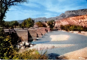 Passer Verdon”, comme l’on disait dans le secteur, s’est fait de diverses manières au fil du temps. On contourne aujourd’hui son beau lac aux eaux turquoises. La traversée s’est d’abord faite le plus classiquement du monde, sur un pont. C’était au temps où les Romains occupaient la Provence. Ici il y avait le pont « romain » d’Aiguines, sous les eaux actuellement, l’ouvrage n’a pas été détruit.