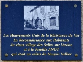 Une place du village des Salles-sur-Verdon portent le nom de maquis Vallier et de Gleb Sivirine. On peut lire sur la plaque qui se trouve aux Salles "1911-1990. Il fut le lieutenant Vallier, commandant le maquis AS du Var. Hommage des MUR (Mouvement unis de la Résistance) au village des Salles îlot de la Résistance Varoise". Le lieutenant Vallier dans son journal écrit : "Les Salles est le patelin qui nous ravitaille le mieux dans la région et les habitants en sont vraiment très chics."
