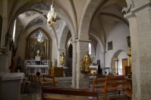Au XVe siècle, une chapelle vouée à Saint Jean-Baptiste est construite en ce lieu dans le quartier Ribière. Un siècle plus tard, elle est agrandie pour devenir l’église paroissiale. Elle remplaçait l’église Saint-Thomé, située dans le village fortifié du même nom. L’année 1567 gravée sur le fronton de la porte renvoie probablement à la date de son achèvement ou de sa consécration. Cette église présente une architecture sobre avec un porche de style néo-roman, datant de 1657.