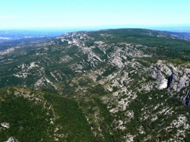 Vous vous trouvez ici sur les Hautes Plaines à quelques pas du Mourre de Cairas situé 150 m plus au nord et point culminant du Petit Luberon (726 m). Le massif du Petit Luberon forme un pli anticlinal (pli en forme de voûte) orienté est-ouest, entre la plaine de Cavaillon et la combe de Lourmarin. Son flanc nord domine la vallée du Coulon-Calavon, et son flanc sud, la vallée de la Durance, fleuve mythique de Provence. Vers l'ouest, sur les hauteurs de Bonnieux, la forêt des Cèdres recouvre le massif.