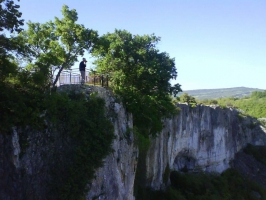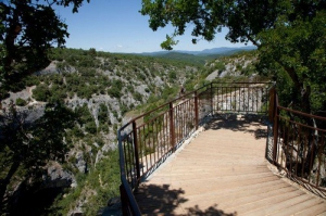 À deux pas du parking, deux belvédères se font théâtralement face ! En contrebas, les entrailles du Calavon se révèlent, sur la rive opposée se dessine le sentier du retour et plus loin, à l'est, la Montagne de Lure apparaît... Depuis 2009 et les gros travaux d'aménagements, le premier belvédère (côté ouest) ainsi que la zone d'accueil agrémentée de panneaux d'interprétation, sont accessibles aux personnes en situation de handicap (label Tourisme Handicap).