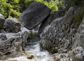 Le nom de Calavon, est aussi celui d’un lieu-dit situé au nord du village d’Oppedette, tout près des gorges creusées par la rivière. On peut voir dans Calavon une variante de l’occitan calaven « gouffre, précipice, ravin ». L’origine de ce terme peut se trouver dans la base préceltique *kal- ou *kar- « pierre, rocher » ou bien dans la base *kerb- qui exprime la notion de cassure, de coupure. Le nom aurait donc désigné d’abord le relief escarpé et rocheux, puis la rivière qui le traverse. Source : FOSSAT, Gilles. 2012. Les noms de l’eau en Vaucluse. Toponymie et hydronymie. Paris, L’Harmattan, 159 p.