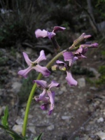 Les belvédères et corniches nous attirent pour les vues qu'ils offrent.... Ce sont aussi les habitats de prédilection d'une flore très spécifique, adaptée à des conditions extrêmes de sécheresse et de lumière. La Dauphinelle fendue (Delphinium fissum) et la Julienne laciniée (Hesperis laciniata) en sont deux magnifiques représentantes, rares localement. La Dauphinelle est même protégée dans notre région. Il convient donc de les préserver de notre quête de points de vue !