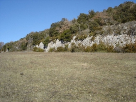 La petite falaise en bordure du champ est un miroir de faille. En vous approchant (en veillant aux cultures), vous verrez sur cette surface polie, des dépôts de fer et des stries horizontales. Tout cela traduit le frottement et le mouvement d'un bloc rocheux par rapport à l'autre ! La Terre bouge. Les roches dures se cassent, les blocs se déplacent.