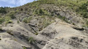 Les marnes façonnent le paysage en dunes de roche souple aux pentes arides. Témoins de la période du Crétacé inférieur (il y a environ 135 millions d’années), ces marnes du Valanginien sont principalement composées de calcaire, de sable et d’argile, ce qui leur donne un aspect friable une fois sèches. Teintées de gris ou de jaune pâle, elles racontent l’histoire d’un temps où l’océan recouvrait les Baronnies, alors immergées dans une vaste fosse marine : le bassin vocontien.