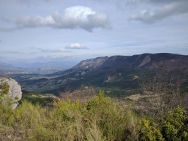 Le paysage, depuis les abords du Rocher Saint-Michel est marqué au sud par une crête rocheuse rectiligne bordant la vallée du Céans d'ouest en est sur plus de 20 km de long : c'est la montagne de Chabre. La face sud de cette montagne, dont le sommet culmine à 1352 m, donne sur la vallée de la Méouge et permet l'accès à la crête aux nombeux pratiquants de deltaplane et de parapente qui viennent y prendre leur envol. Ce site accueille régulièrement des compétitions internationales de vol libre.