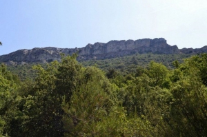 Véritable rempart de la Sainte-Baume, le Mont Aurélien constitue un vaste ensemble forestier dominant au nord la vallée de l’Arc et au sud la plaine de Nans-les-Pins et de Rougiers. Ce massif culminant à 872 mètres est à cheval sur les communes de Saint-Maximin-la-Sainte-Baume, Pourrières et Pourcieux. La barre rocheuse, caractéristique de ce massif, que l’on peut voir depuis le sentier, est appelée localement « le Baou », qui veut dire colline au sommet plat en provençal.