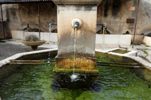 L’histoire de la commune, écrite au XIXe siècle, retrace la découverte en 1647 d’une source « aux eaux abondantes et limpides » qui permit de construire un réservoir et deux barquièu (ou bassins). Il devint possible, en plus, « d’arroser des jardins et de créer des prairies » en contrebas de la fontaine. Cette fontaine aurait donc été construite en 1858. L'alimentation en eau de l'édifice se fait par la source traversant le village depuis le Nord et canalisée par une mine.