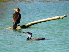 Le cormoran est un oiseau aquatique au plumage sombre et à la silhouette élégante. Il se distingue par son aptitude à plonger profondément pour se nourrir de poissons. Son vol est puissant et ses ailes déployées offrent un spectacle saisissant. Les cormorans sont souvent observés en groupe, perchés sur des rochers ou des arbres près des étendues d'eau. Leur présence est un indicateur de la santé des écosystèmes aquatiques. Ces oiseaux marins fascinants symbolisent la liberté et l'harmonie avec la nature. Ils sont présents sur ce petit lac.