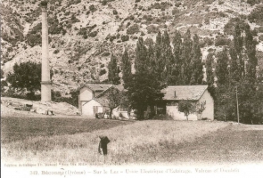 L’eau du Lez a longtemps été utilisée pour faire fonctionner un moulin à blé puis une usine hydroélectrique qui fut la première en France. Entre 1888 et jusqu’en 1960, elle alimentait Dieulefit et Valréas. A gauche du chemin avant de traverser la route, un ancien déversoir, aujourd’hui planté d’arbres, alimentait cette usine. Une chute d’eau de 25 mètres faisait fonctionner les deux turbines de la centrale. A l’aval, les canaux permettaient d’irriguer les cultures.