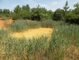 Cette zone humide tire son origine de l’activité ocrière du site et devait servir au stockage de l’eau utilisée pour le lavage des ocres. C’est l’une des mares les mieux conservées du Parc du Luberon et qui fait partie des sites connus de reproduction du Pélobate cultripède (ou crapaud à couteaux). Cette espèce rare et vulnérable en France est considérée comme quasi-menacée au niveau mondial. Equipé de "couteaux" derrière les pattes arrière, il s'enfouit dans le sable jusqu'à ce qu'il pleuve !