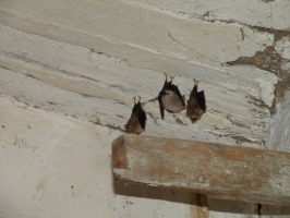 Véritable petite boule de poil, cette chauve-souris ne pèse que 2 à 5 g. L’espèce possède un appendice nasal caractéristique en fer à cheval. Au repos et en hibernation, le Petit rhinolophe s’accroche dans le vide et s'enveloppe complètement dans ses ailes, ressemblant ainsi à une poire suspendue. En hiver, il occupe des galeries d'ocre. En été, les femelles utilisent les cabanons comme des maternités. Attention de ne pas les déranger ! Il est strictement interdit de pénétrer dans les galeries et les cabanons (site classé), en raison d'éboulements fréquents et pour éviter tout dérangement dramatique des chauves-souris (espèces protégées).