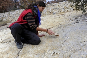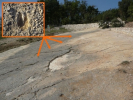 La dalle à empreintes de pas de mammifères de Viens a été découverte en 1968 par des excursionnistes. Ce site est composé de deux dalles de 20m² et 400m² appartenant au même niveau, séparées par la piste de La Buye. Elles sont formées de calcaire d’origine lacustre et datent d’environ 33 millions d’années (formation des Calcaires de la Fayette, période Oligocène, ère Cénozoïque). Ce géosite exceptionnel du Géoparc du Luberon est également l'un des 28 sites de la Réserve naturelle géologique du Luberon : la réglementation y interdit d'extraire et de ramasser les fossiles ainsi que d'effectuer des moulages.