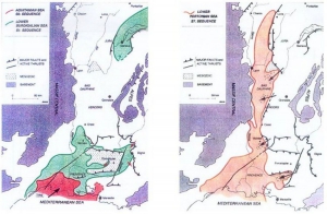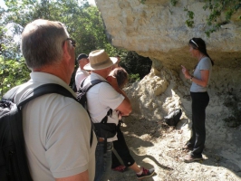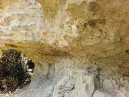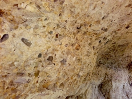 Au Miocène, il y a 20 millions d’années, la mer transgresse et recouvre la Provence. On peut aujourd’hui visualiser son arrivée dans les couches géologiques. Une première couche de sables verts, correspond à l’ancien littoral. La glauconie, minéral riche en fer donnant cette teinte verte, se forme dans les eaux peu profondes. Ces sables sont surmontés d’un conglomérat de galets, parfois verdis également, charriés par l’arrivée de la mer. Au-dessus, une fois la mer installée, s’est déposée une roche sédimentaire : la molasse.