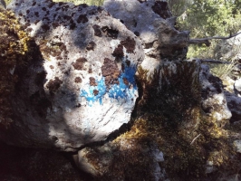 Ce vieux chemin rural a été mis en lumière dans les années 1980 par François et Claude Morenas, infatigables défricheurs d’itinéraires. Quelques traces de vieux balisages de couleur bleu persistent encore. A l’automne 2016 le comité départemental Vaucluse de randonnée avec l’appui technique du Parc, ont organisé une journée de débroussaillage de bénévoles sur cet itinéraire. Puis en mars 2017, c’est avec le Lycée Agricole La Ricarde de l'Isle-sur-la-Sorgue que le balisage a été entièrement refait.