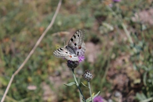 L'apollon, (Parnassius apollo) ce papillon au corps poilu est inféodé au climat de montagne. La chenille se nourrit de plantes succulentes : orpins, joubarbes. A la fin de sa période larvaire, elle tisse un cocon lâche légèrement enterré avant de se transformer en chrysalide. L'Appolon hiberne à l'etat oeuf.