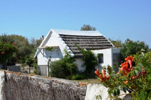 Habitation traditionnelle des gardians de Camargue, la cabane possède des murs blanchis à la chaux et un toit de sagne (roseaux des marais). L’architecture de ces cabanes est originale : des murs droits sur tous les côtés, sauf celui exposé au mistral (nord-ouest), qui est en abside (de forme arrondie) pour offrir moins de prise au vent. Au sommet de cette abside, on retrouve généralement une forme de croix ou de corne qui servait autrefois à arrimer la cabane au sol lors des jours de grand vent.