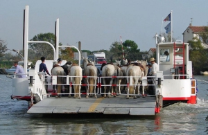 Mis en circulation en 1972, le bac du Sauvage a été entièrement rénové en 2004. Il permet de relier gratuitement les deux rives du Petit-Rhône. Il est propulsé par deux roues à aubes latérales sans possibilité de direction, et sa circulation est facilitée par un câble. Le bac peut transporter 8 voitures, 30 passagers et l’équipage pour une traversée d’une durée de 2 min. Les centres équestres à proximité proposent des ballades en empruntant ce bac : il est donc fréquent de voir des chevaux à bord.