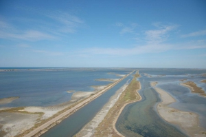 Les étangs et les marais salants situés en basse Camargue sont peu profonds et séparés de la mer par un cordon sableux. En communication intermittente avec la mer par l’intermédiaire de vannes, ces étangs sont saumâtres ou salés. Lieux d’accueil privilégiés pour de nombreux oiseaux et des poissons, ils jouent aussi un rôle majeur pour la gestion de l’eau. Du fait de leur étendue et de leur richesse en invertébrés, ils sont des zones appréciées par les oiseaux, notamment par le flamant rose.