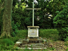 Cette croix annonce le sentier qui mène à la chapelle romane Notre-Dame-du-Château. Celle-ci est mentionnée pour la première fois en 1180 et fut restaurée vers 1419. Erigée sur la colline Saint-Michel-de-Briançon, elle domine le village de Saint-Etienne du Grès, ancienne paroisse de la ville de Tarascon. C’était une chapelle prieurale dépendant de l'abbaye Saint-Laurent d'Avignon. Depuis 1350 elle accueille la "Belle Briançonne", une statue de la Vierge à l'Enfant très connue des Tarasconnais.