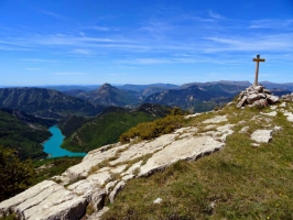 Au sommet une vue exceptionnelle sur le lac de Castillon et la retenue de Chaudanne, et les montagnes alentours dont le Pic de Chamatte (1 879 m).
