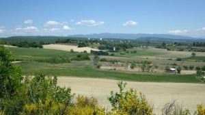 Cette balade traverse un large bassin légèrement vallonné, composé d'une véritable mosaïque paysagère. Cette diversité est liée à la présence ponctuelle de roche et d'eau qui a permis le développement par endroit d'une activité agricole verdoyante. Ce paysage bucolique est agrémenté de vastes panoramas sur le Luberon au sud, la montagne de Lure au nord et les Alpes à l'est. Les villages, dont la silhouette est bien marquée, sont implantés sur des promontoires rocheux en périphérie de la vallée.