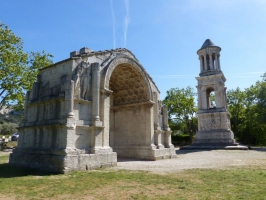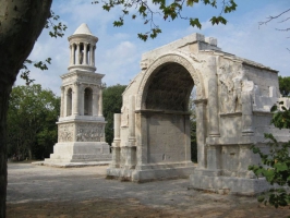 Le Mausolée des Jules et l’Arc de Triomphe sont deux monuments appelés "Les Antiques". Ils marquaient l’entrée de la ville de Glanum. Le Mausolée funéraire date des années 30-20 av. J-C. Il est célèbre pour sa structure particulière et unique dans l’architecture romaine. Datant des années 20 ap. J-C, l’arc a perdu le fronton qui surmontait la voûte. Il est orné de beaux reliefs illustrant la conquête des Gaules par César et de fruits et feuillages, symboles de l’abondance, sculptés sous la voute.