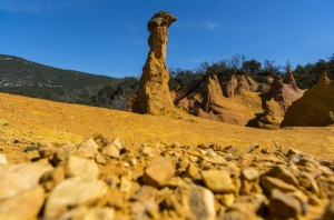 D'içi, sur le Coteau de Devens, on aperçoit en contrebas les ocres de Rustrel et le Colorado provençal. Depuis la fin de l'exploitation de l'ocre, la végétation a peu à peu envahi le site malgré des coupes d'arbres réalisées pour recréer des ouvertures paysagères et retrouver les anciens fronts de taille. Site classé en 2002, les Ocres du Luberon sont un des gisements les plus importants au monde. Au Colorado, l’exploitation de l’ocre a eu lieu dans des carrières à ciel ouvert de 1871 à 1991.