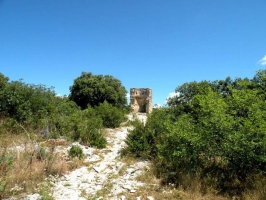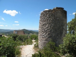 Juste en amont des anciens moulins à blé, se dresse en bord de falaise, ouvert aux quatre vents, une ruine en demi-cercle, sans toit, ni porte. Il s’agit d’un ancien moulin à vent qui servit à broyer du gypse extrait sur la colline de Perréal située 3km au sud de Saint-Saturnin-lès-Apt. Ce gypse, une fois broyé, était acheminé au four permanent situé 80 m plus bas, où il était chauffé pour être transformé en plâtre.