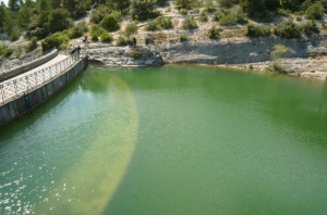 En 1763 une première retenue a été réalisée en travers de la combe sous le château pour alimenter la fontaine du Matheron situé près de l'église. Après deux débordements en 1780 puis 1835, la retenue a été rehaussée et renforcée. Jugé dangereux, ce barrage fut doublé en 1902 par un second barrage de 14 m, construit immédiatement en aval. Puis, après réparation de plusieurs fuites, il fut équipé d’un trop-plein en 1904. D’une contenance de 2 200 m3, il a alimenté la plupart des citernes, fontaines et lavoirs du bourg jusqu’à l’arrivée des réseaux d’eau potable en 1953.