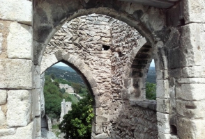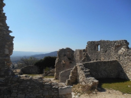 Apparut dès 960 dans des textes officiels, puis désigné comme castrum dès 1006, le village fortifié s'élevait sur l’éperon rocheux et était bordé par le ravin de la Combe. L’éperon rocheux encore entouré de remparts, délimite ce premier village fortifié. Les remparts montrent un appareillage remarquable en chevrons dit à la sarrasine. Leurs tours ont disparu, sauf celle du Portalet (tour de guérite) à proximité et une partie du donjon en amont de l'éperon. De l'époque du castrum à nos jours, le village a connu successivement quatre extensions aux XIIe, XIVe, XVe et XVIe s.