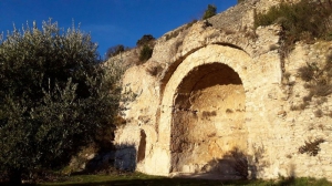 Sous le chemin de Basse Roque, résiste au temps l’abside de la chapelle des Pénitents blancs où se tinrent en 1790, les premières élections municipales et cantonales de Saint-Saturnin-lès-Apt. Il est vraisemblable que sa construction remonte aux environs du XVe s. et qu'elle ait été restaurée fin XVIIe début XVIIIe s. La façade ornée d'une porte en plein cintre, était encadrée de deux fenêtres et surmontée d'un oculus : elle a aujourd'hui disparue. Son abandon se situe vers 1900 car elle menaçait ruine.