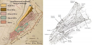 Au XVe s., le portail Matheron et la porte Rabaille (ou porte des Remparts) qui fermait la rue des remparts (actuelle rue Pasteur), aujourd’hui disparus, donnaient accès à la campagne. La porte des Lices (1435) surmontée de la Tour de l’Horloge, aujourd’hui également disparues et qui jouxtaient l’église, faisaient communiquer le village ancien avec les faubourgs de l’ouest. Enfin la porte d’Auvergne permettait de relier le quartier des Baux, situé à l’ouest du portail L’Ayguier.
