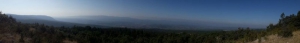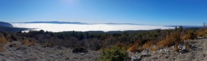 L'un des plus saisissants points de vue du pays ! Pas de belvédère à pic mais une vision grand angle ; de la Grand-Montagne à l'est qui domine Rustrel, jusqu'au col de Gordes à l'ouest. Juste en face, plein sud, le col du Pointu qui domine la Combe de Lourmarin séparant le Grand du Petit Luberon. Au loin, par ciel dégagé et lumière ‘’luberonesque’’, on peut même apercevoir l'Etang de Berre, la Méditerranée et le Pic Saint Loup près de Montpellier. Magique !