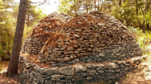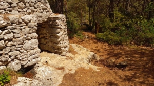 La citerne unique de l'aiguier de Barralier est séparée en deux par un pont de pierre, comme celui de de l’aiguier Bessons situé plus en aval de l'itinéraire. Mais ici, les voûtes en encorbellement prennent appui sur l'arche taillée et recouvrent ainsi chacune des deux parties. Cette couverture similaire à celle des bories, permettait de protéger l’eau recueillie des impuretés, de limiter son évaporation et de lui maintenir une fraîcheur constante. En mettant la tête à l'intérieur, on peut apprécier l’architecture et l'escalier en pierre aménagé. Autour, on peut aussi distinguer trois abreuvoirs, ainsi qu’une rigole qui relie la dalle de recueil des eaux à la citerne.