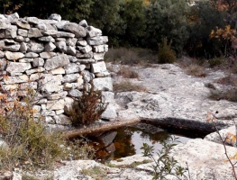 Ici, sur une grande dalle de rocher, on ne trouve pas moins de quatre aiguiers à des fins d’alimentation des troupeaux et du hameau de Travignon qui comptait encore 30 habitants en 1914. Deux aiguiers à ciel ouvert et deux aiguiers couverts d’une voûte en berceau clavée constituée de pierres rayonnantes et dont le cintre arrondi est fermé par une clé (d’où le terme de voute clavée). Ces deux splendides spécimens ont été restaurés en 1993 par l’APARE (Association pour la Participation et l’Action Régionale).