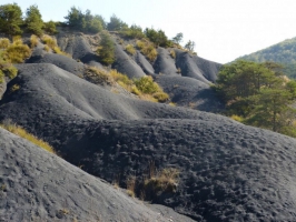 Façonnant le paysage des Baronnies provençales, les marnes résultent de l'érosion de roches sédimentaires. Émergeant il y a 185 millions d'années de l'Océan "Téthys", recouvrant l'ensemble de ce territoire, elles se composent de carbonates et de minéraux argileux. Résistantes à l'abri de l'air, elles permettent une conservation importante de fossiles. Virant du bleu au gris, leurs couleurs varient en fonction de la teneur en sédiments.