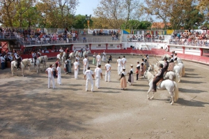 Construite au XXe s., les arènes de Salin-de-Giraud font partie de l'arsenal social que l'usine Solvay avait mis en place pour son personnel. Les travailleurs venus du Gard voulaient avoir un lieu pour leur passion des taureaux. Le poète félibre Carle Naudot, contremaître à l'usine Solvay, créa le club taurin Prouvenço Aficioun pour animer cette enceinte, une des premières construites en dur en Provence. Aujourd'hui, les arènes sont un centre névralgique pour l'activité socioculturelle du village.