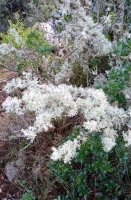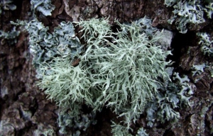 Evernia prunastri dit évernie du prunellier ou mousse du chêne, est un lichen, un organisme résultant de la symbiose d’une algue et d’un champignon. Sans danger pour l’arbre, il pousse sur les branches qui peuvent être ainsi complètement recouvertes et donner un aspect parfois lugubre, parfois enchanteur, à ses hôtes. Utilisé comme bioindicateur pour sa sensibilité aux grandes concentrations de dioxyde de soufre et d’azote, il est aussi utilisé en parfumerie pour apporter des senteurs boisées.