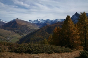 Du sommet en regardant vers la vallée de l’Aigue Blanche. Au premier plan le pic de Château Renard fait la jonction avec l’Aigue Agnelle. Au fond La tête des Toillies, le pic de la Farneiréta, la Tête de Longet, la roche Noire, le Peouvou et bien d’autres marquent la frontière avec l’Ubaye. Le Sommet Bûcher offre des points de vue sur le bas Guil, le haut Gui, les Ecrins et le vallon d’Arvieux.